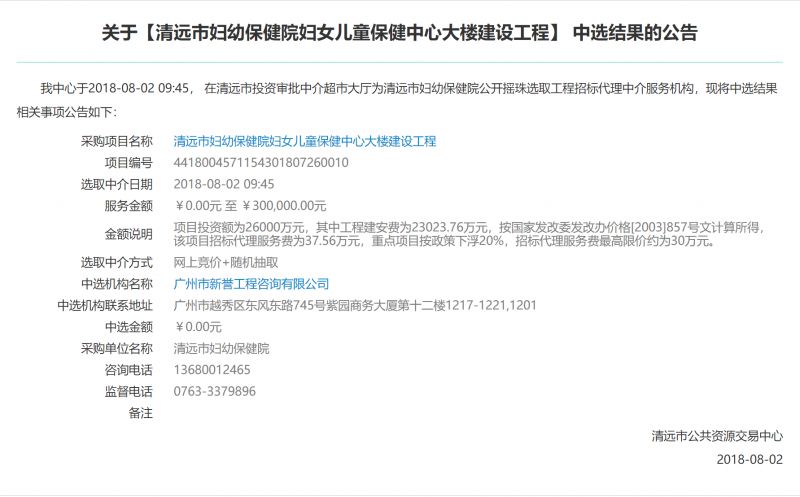 最終,廣州市新譽工程咨詢有限公司以 0 元服務(wù)費 中標(biāo)。