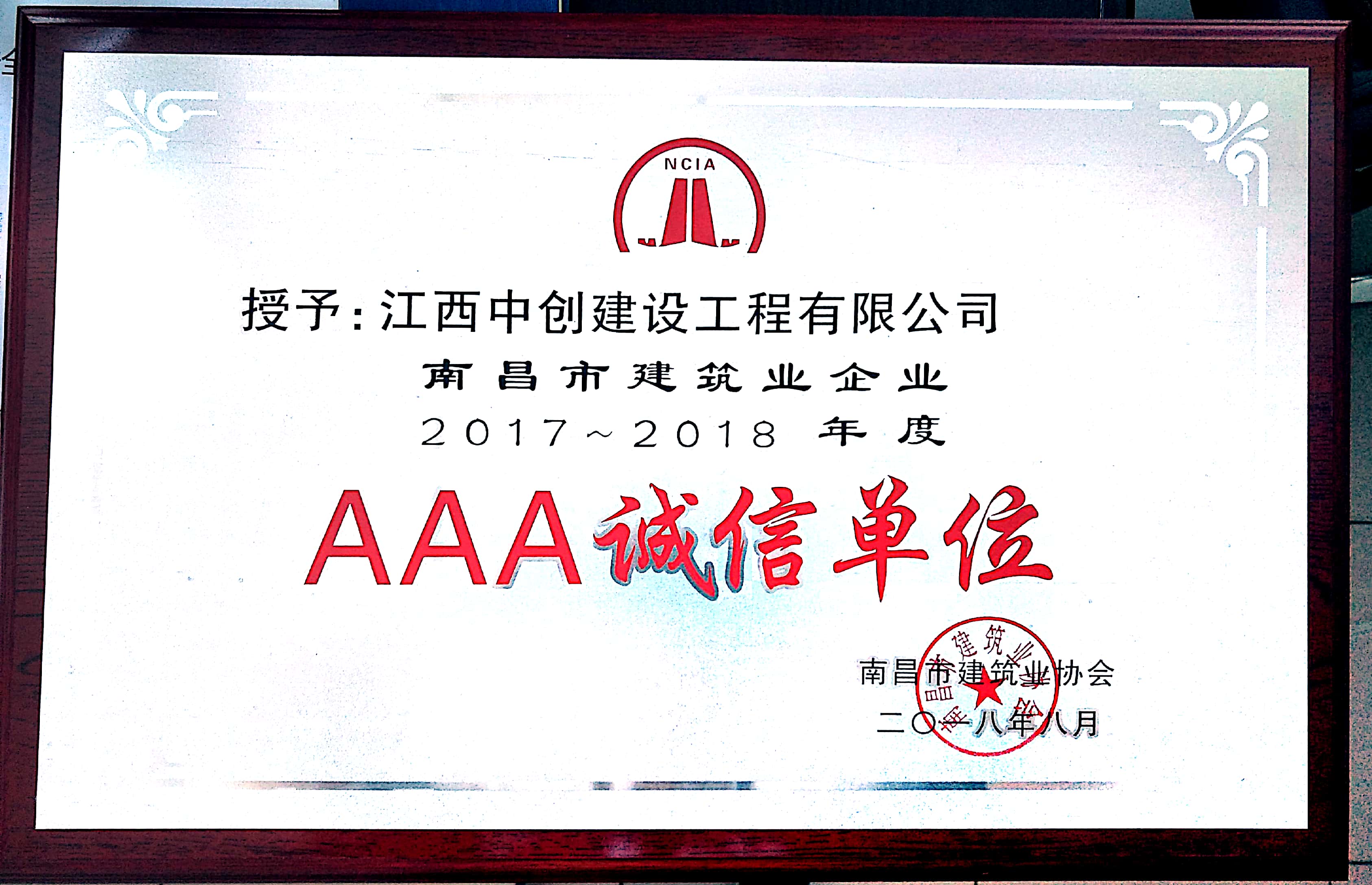 南昌市建筑業(yè)企業(yè)2017-2018年度AAA誠信單位